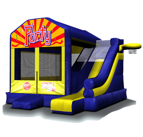 If you want that little extra at your special event, this combo jumper brings the works. It includes bouncer room, climbing tunnel, exit slide, and two basketball hoops both inside and out! That's not all. This 5-in-1 combo also comes with a choice of six uniquely different party theme banners including Space Wars, Dino Jump, Underwater Adventure, Princesses, Happy Birthday, Big Time Party. Make sure to pick one to perfectly fit your celebration. (PARK PACKAGE PRICING INCLUDES A GENERATOR FOR 6 HOURS & PARK INSURANCE)